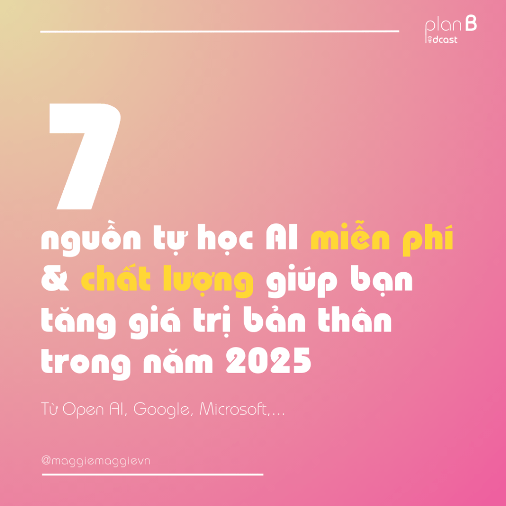 Maggie chia sẻ đến bạn 7 nguồn học AI rất chất lượng và hoàn toàn miễn phí, tập trung vào cung cấp kiến thức nền tảng dễ hiểu, hướng dẫn thực hành và ứng dụng thực tế dành cho người đi làm: